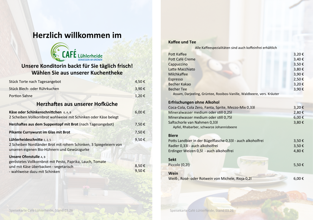 In unserem idyllischen Hofcafé mit Terrasse und Cafégarten verwöhnen wir Sie zu jeder Jahreszeit. Genießen Sie Kaffee und Kuchen aus eigener Herstellung, unser Bauernhofeis oder unsere lecker-herzhaften Snacks wie bspw. die „Lühlerheider Ofenstulle“.